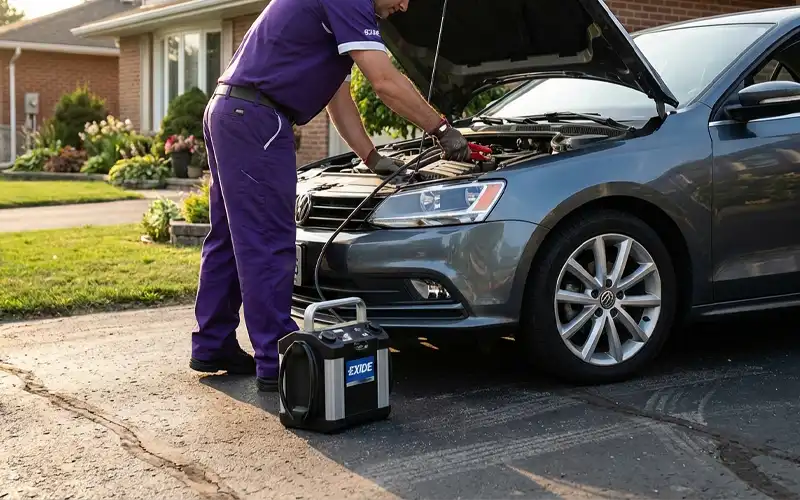 Immediate Exide battery jump-start at your doorstep. No towing. No delays. No battery removal. 800 Jump Start Hub dispatches certified mobile technicians within 25–30 minutes to boost your battery safely on-site and get you moving again quickly.